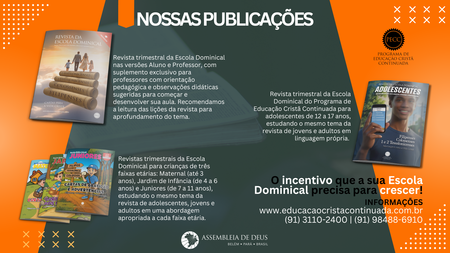 Adquira o novo Roteiro para Células " Ezequiel - O Atalaia de Israel. " Disponível para Android e iOS no aplicativo Revista da Escola Dominical (anexado à Revista de Adultos) ou em nossa loja física localizada na Tv. 14 de Março, 1511 - Nazaré, Belém-PA Pedidos e +informações: (91) 3110-2400 (91) 98488-6910 (WhatsApp)